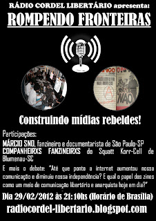 Por isso o programa “ROMPENDO FRONTEIRAS: Construindo Mídias Rebeldes”, tem o objetivo de construir um debate/reflexão em torno deste tema e resgatar, relembrar, criar diversas formas de comunicação e assim descentralizar essa difusão e diálogo libertário de maneira autogestionária, onde possamos ser nós mesmxs aquilo que acreditamos pelo processo de auto-educação e assim construirmos uma longa rede de comunicação libertária/anarquista.